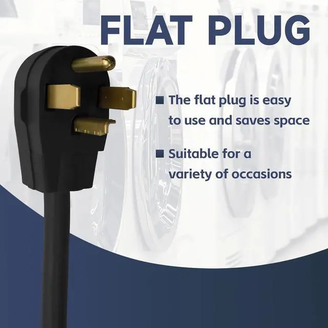 Flat Plug - The heavy duty dryer cord can fit with the wall, saving space, can also be used in narrow places