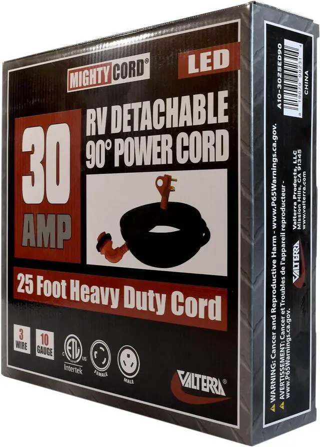 RELIABLE POWER: 25-Foot power cord provides up to 30 amps of power to your RV, camper, or trailer