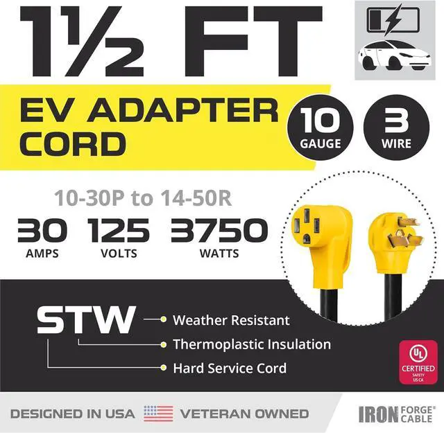 Integrity in Service: Iron Forge Cable, a U. S. veteran-owned business, stands behind its ev charger extension cable. We' re here to help resolve any issues that you may have on your nema 10-30 to 14-50 adapter.