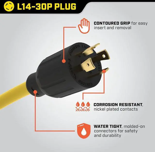 • Powerful Converts a 30-amp locking outlet to four 20-amp household outlets and extends your power up to 25 feet