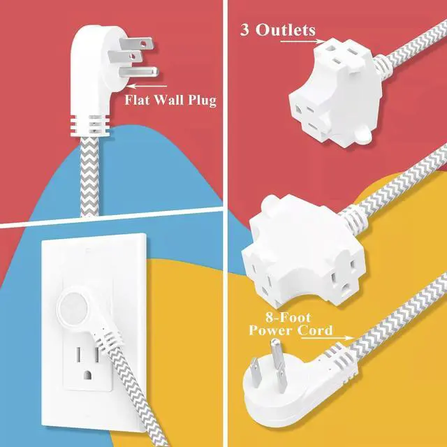 CONVENIENT: One plug connected three other sockets with 8-foot extension cord, remote use of sockets, reduce clutter, and save space