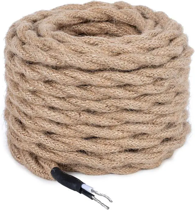 TWISTED HEMP ROPE - Handmade Twisted rope-covered, 2-Conductor, 18 Gauge Wire. A safe and sturdy cord with excellent performance in indoor applications.
