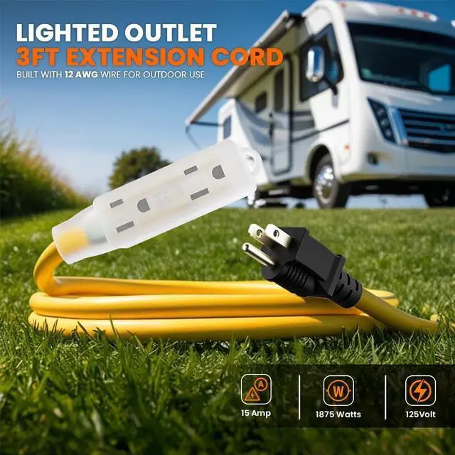 3 OUTLETS IN 1 - Inline outlet extender allows multiple options for install and use, the perfect short power cord to use at workbenches, behind desks, DJ equipment