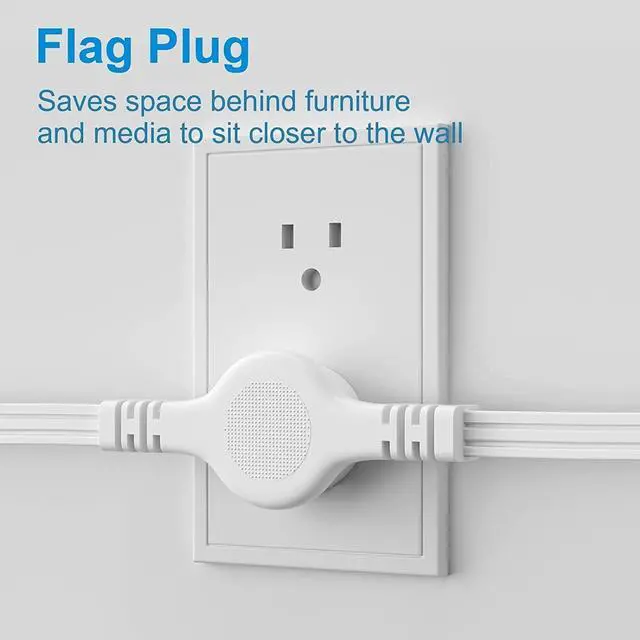 Flat Plug (Wall Hugger) - Stays close to Wall & is Ideal for Tight Spaces, Great to plug in your Clock, USB adapters, lamp, Night light, Baby monitors, Charger, lights or any of your multiple electric gadgets.