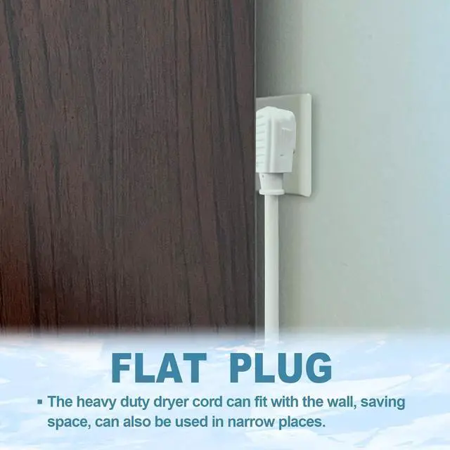 Flat Plug - The heavy duty dryer cord can fit with the wall, saving space, can also be used in narrow places