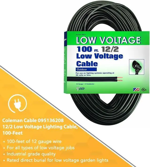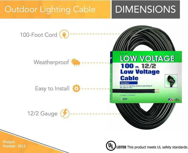 RUGGED OUTDOOR LIGHTS CABLE: conveniently run wires for your outdoor holiday lights with this 100-ft cable for outdoor lights without having to use multiple wires which could be a tripping hazard; suitable with any 12V low voltage landscape lighting
