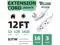 : This White 12 ft flat plug extension cord, 3 OUTLETS, 16 gauge, 3 prong grounded plug and capabilities of 13 amps, 125 volts, and 1625 watts. It operates reliably within a temperature range of -40°F to +140°F.