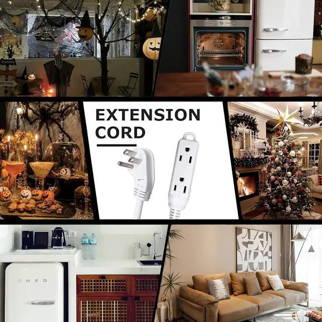 Versatile Power Solution: Our UL-certified SJTW flat plug extension cord is ideal for indoor appliances. Featuring 3 OUTLETS, it enables simultaneous power supply to 3 devices, while its right-angled thin flat plug design allows easy concealment behind furniture, optimizing space.