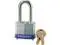 Lock up storage bays, gates and valuables. 1 1/2" clearance offers versatility, while the hardened steel shackle makes it resistant to cutting or sawing for enhanced protection. Four-cylinder pin helps prevent picking and the dual locking system prevents people from prying it open. Non-rekeyable padlock has a wide laminated steel body for extra strength. Lock Type: Key; Opening Type: Cylindrical Shackle; Body Material: Hardened Steel; Color(s): Silver.
