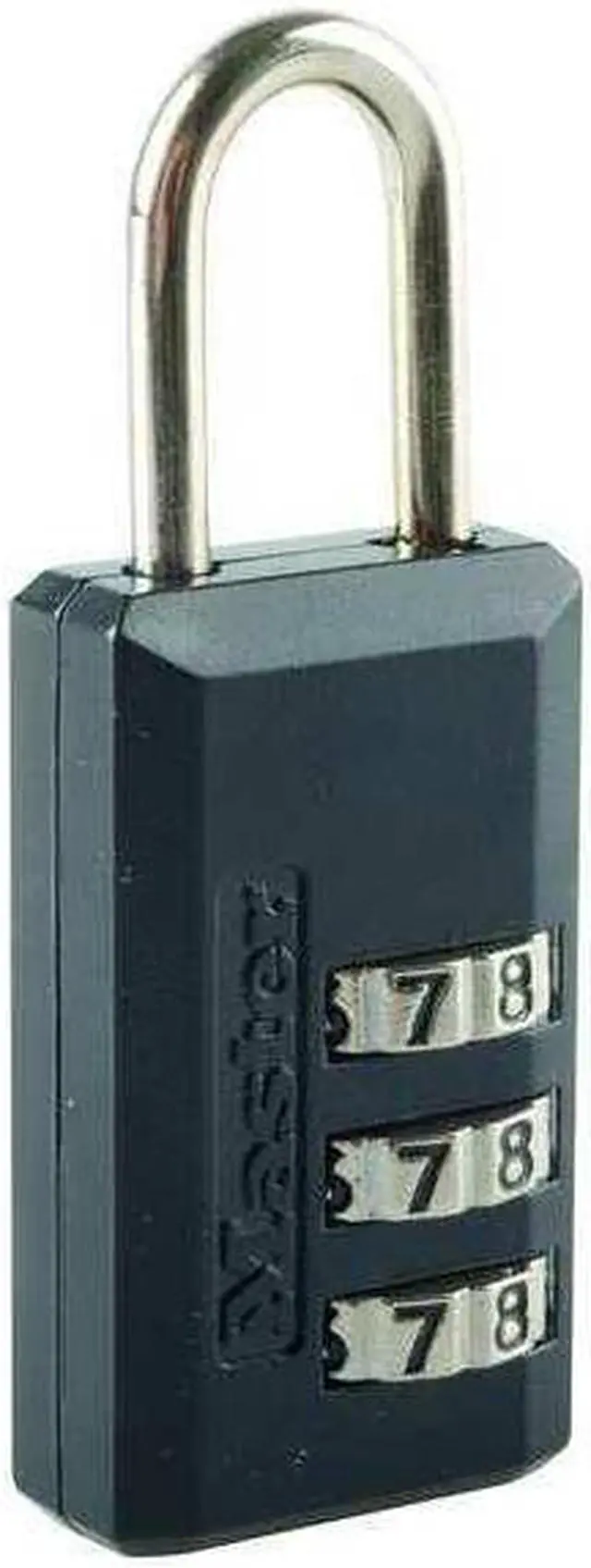 Luggage Padlocks, Body Height 1 13/16 in, Body Material Brass, Body Thickness 1/2 in, Body Width 1 3/16 in, Body Color Black, Control Key Registration Required No, Dial Location Side, For Use With Luggage and Travel, Backpacks, Duffel Bags and Sports Bags, Briefcases and Computer Bags, Jewelry and Curio Cabinets, Key Control Sin Control de Llave, Number of Bumpers 0, Number of Dials 3, Resettable Resettable, Shackle Dia. 3/16 in, Shackle Height 15/16 in, Shackle Material Steel. This item has been restricted from sale in the following state (s): []