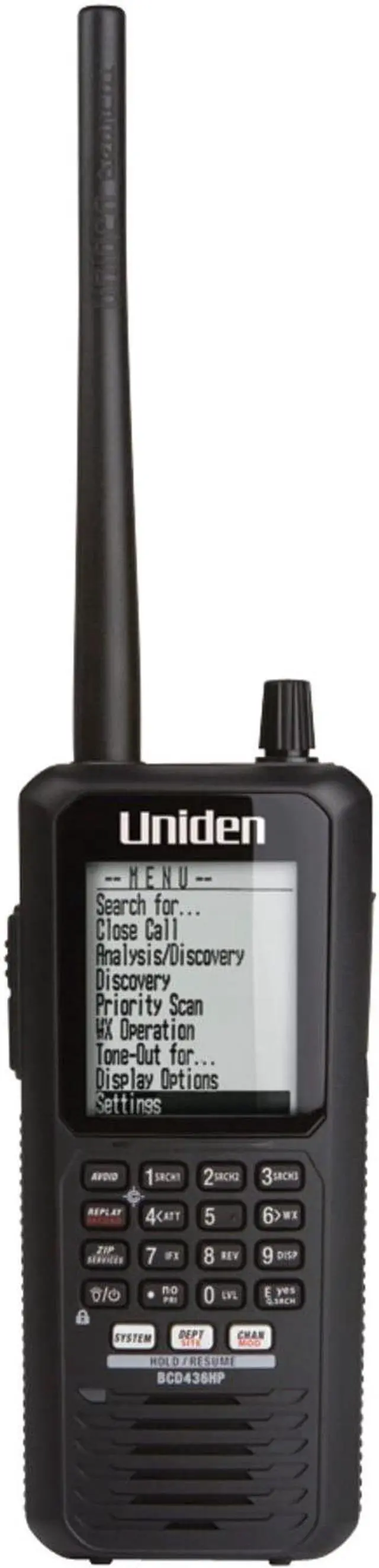 The BCD436HP is the first scanner to incorporate the HomePatrol-1's ease of use in a traditional handheld scanner. Plus, Uniden's exclusive Close Call RF Capture feature, GPS Connectivity, Extra-Large Display, Radio System Analysis and Discover Modes put the most advanced scanner features ever right in the palm of your hand.