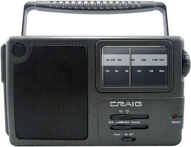Portable AM/FM Radio Rod Antenna 3.5 mm Headphone Jack AC/DC Operated Battery back up (batteries not included) This classic portable AM/FM radio is a must for anyone. Portable and features a rod antenna, 3.5 mm headphone jack, AC/DC operated with the DC6V adaptor (included) or 4 AA batteries (not included).