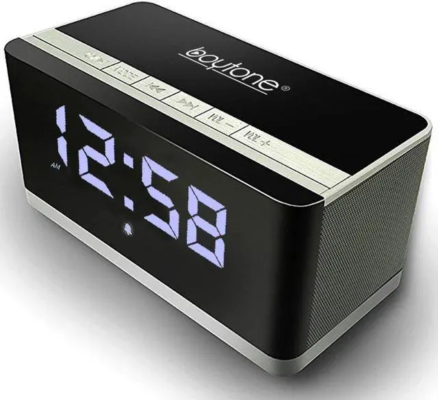 This is not only the clock radio this is the Boytone Wireless Bluetooth Speaker Stereo with USB, Micro SD, FM Radio, Line in 2 massive 5W drivers deliver solid surround sound for listening to the music MP3 playing format and distortion degree is below 0.55 %. Hidden status bar, provide you the with the best Bluetooth experiences. Play music from USB/Micro SD card/cell phone/laptop and so on. Dynamic Sound and Powerful. This portable Bluetooth Clock Radio speaker is designed to deliver high-quality sound. This stunning Bluetooth Clock Radio Speaker features two 5-watt stereo speakers.
