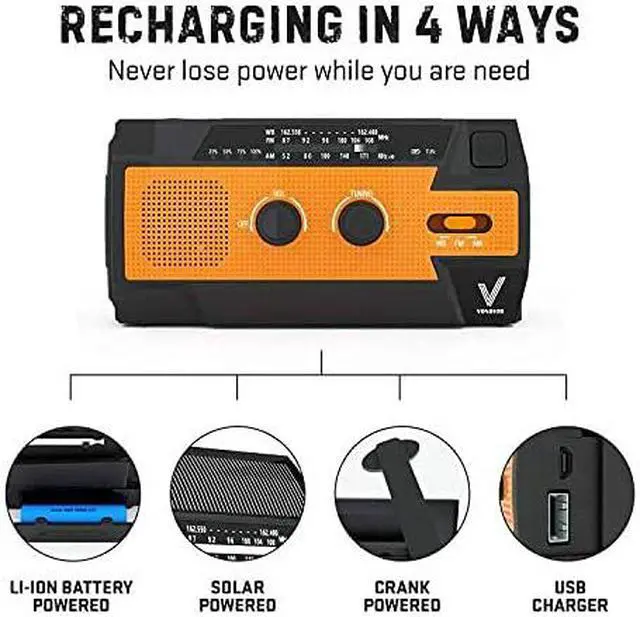 Flashlights for Emergencies: Besides being an emergency radio with an upgraded 4000mAh battery capacity, this life-saving device is also made to be your flashlight, personal lamp & SOS alarm signal light in one. So when there's a power outage, you're stranded in the middle of nowhere or what-not, know that the Vondior Emergency is not your ordinary weather radio or hand crank radio. It's a complete emergency light that gives you that sense of security in times of need