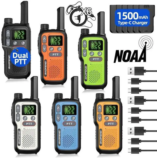 Walkie Talkies Long Range for Adults,Rechargeable Walkie Talkies 22 FRS NOAA Family Walky Talky Two Way Radio Walkie Talkie 1500mAh Battery VOX Flashlight Type-C Charger for Camping Hiking,6Pack
