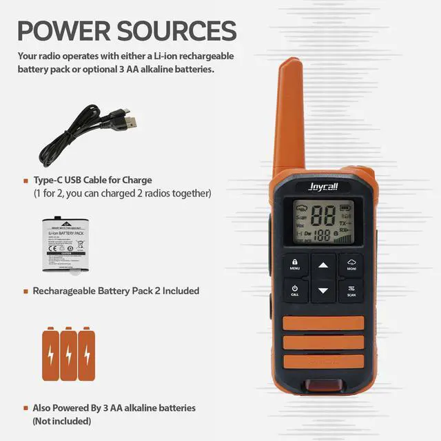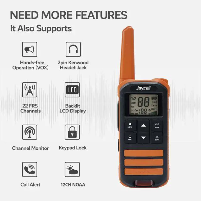 Joycall portable NOAA walkie talkies offer you the great communication experience at home or on the go. It's perfect for adults outdoor adventures, such as camping, boating, hiking, fishing, skiing and so on.