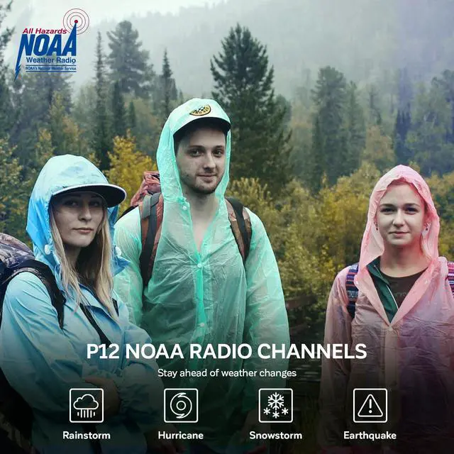 Automatically scans weather band channels to alert you about severe weather. Whether it's a rainstorm, snowstorm or other severe weather you can get the latest weather news with the walkie-talkie's NOAA weather alert feature.