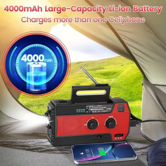 Portable Emergency Weather Radio (HM-096) is a versatile survival tool built for power outages, natural disasters, and outdoor adventures. It features a 4000mAh 3.7V rechargeable lithium-ion battery with four reliable power sources: the internal battery, hand crank power generation, solar panel charging, and a backup AAA dry battery option, ensuring uninterrupted operation even when grid power is lost. The internal battery can be recharged via three convenient methodshand crank, solar panel, or Type-C fast chargingmaking it ideal for off-grid use and emergency scenarios.