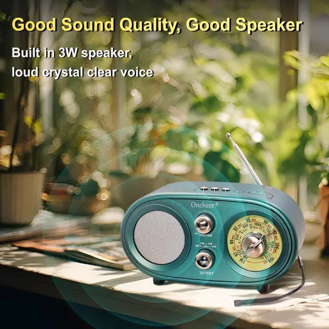Multi-Functions Speaker: This Oncheer 2076BT bluetooth speaker radio is a combination of 3 band FM/AM/SW radio and stereo wireless bluetooth speaker. Build-in adjustable 360° rotating antenna and premium reception radio chip, the FM radio have nice radio listening experience. You also can connect radio to your mobile phone to play music via bluetooth, or pluging TF card/ USB drive easily to play music as a MP3 Player.