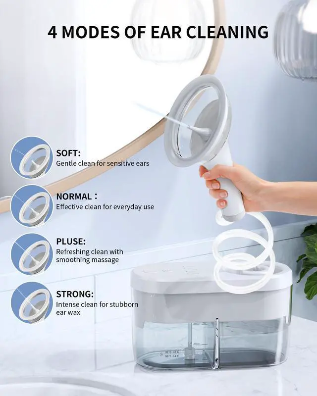 Gentle and Comfortable: KAUGIC ear cleaner has 4 cleaning modes (soft, normal, pulse, strong), it can provide 8-15psi gentle and comfortable water pressure, while cleaning ears quickly, it will not make you feel uncomfortable, 4 kinds pressure settings can meet different needs of your family members, let your family enjoy clear sound