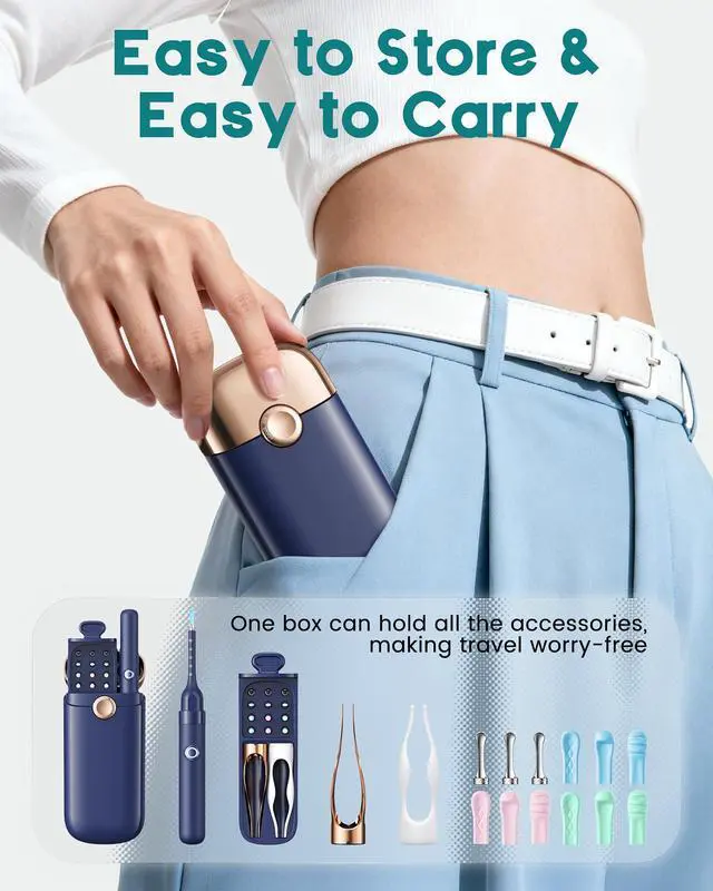 Portable & Neat: One box can hold all the accessories, making travel worry-free. You only need to bring a portable storage box when you go out to meet the ear cleaning needs of the whole family