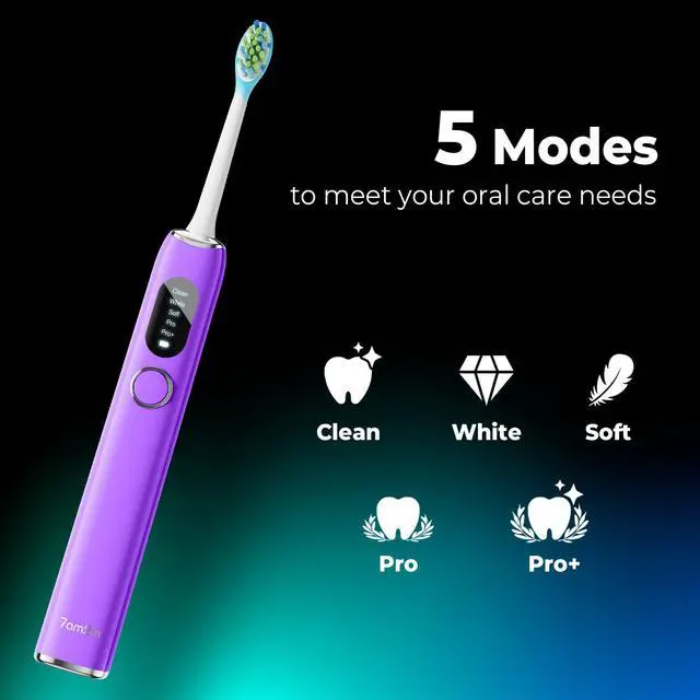 This 7AM2M Ultrasonic Electric Toothbrush is designed for adults and teens to provide a clean and healthy smile. It has a clear LED screen that shows your brushing status. There are 5 different brushing modes to suit your needs. With one charge, it can work for 180 days. It also has a 2-minute timer to help you brush for the right amount of time. The package includes 8 brush heads and a travel case, making it convenient for daily use and on-the-go. This toothbrush is powerful, easy to use, and helps you keep your teeth clean every day.