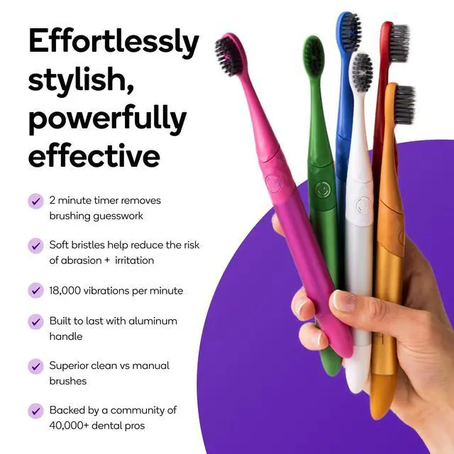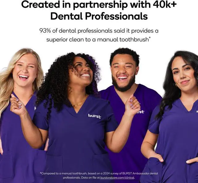 | Toothbrush + AAA Battery | 2 Burst Nova Toothbrush Heads | 45 Chewable Tablets | 45 Chewable Tablets | Pack of 40 Yards Floss |