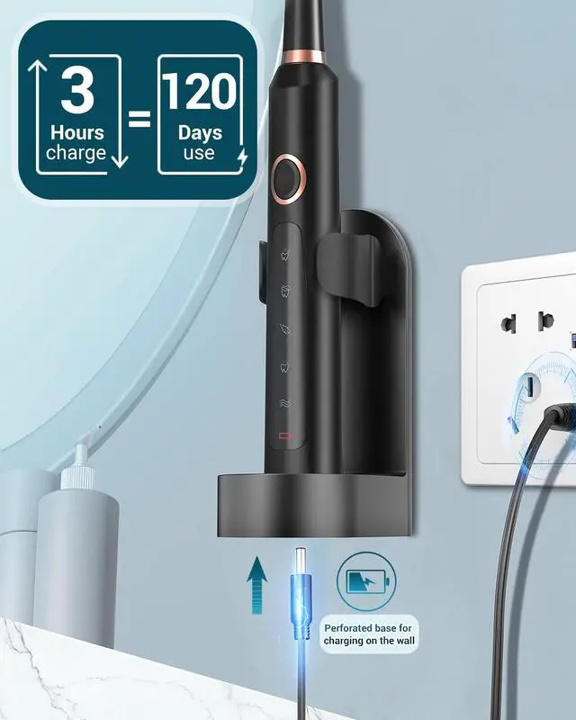 2. The sonic electric toothbrush for adults package comes with an easy-to-install stand, making it easier to place and charge the sonic toothbrush for adults. The USB charging cable is compatible with any charger, allowing you to charge the power electric toothbrush for 3 hours and enjoy up to 4 months of use.