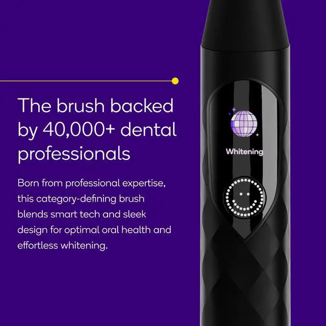 | 10x More Plaque Removal* | Ultra Soft Bristles | Portable with 80-Day Battery | Proprietary Probiotic Blend | Visible Results After 1 Use | Expandable & Textured Floss | 26x More Plaque Removal |