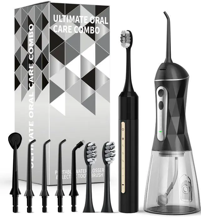 Lumivoid Water Flosser & Electric Toothbrush Combo,Portable Cordless Rechargeable Oral Irrigator and Electric Toothbrush for Travel Use,for Adults Teenskids&4 Modes for Teeth,Gums,Braces,Dental Care,Equipped with 5 Jet Tips ,IPX7 Waterproof