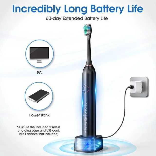 - - This electric toothbrush comes with 8 premium brush heads and a sleek travel case, ensuring you have everything you need for a long-lasting and convenient oral care routine, whether at home or on the go. The high-quality brush heads are designed to effectively clean every corner of your mouth, while the travel case keeps your toothbrush safe and protected during your travels.