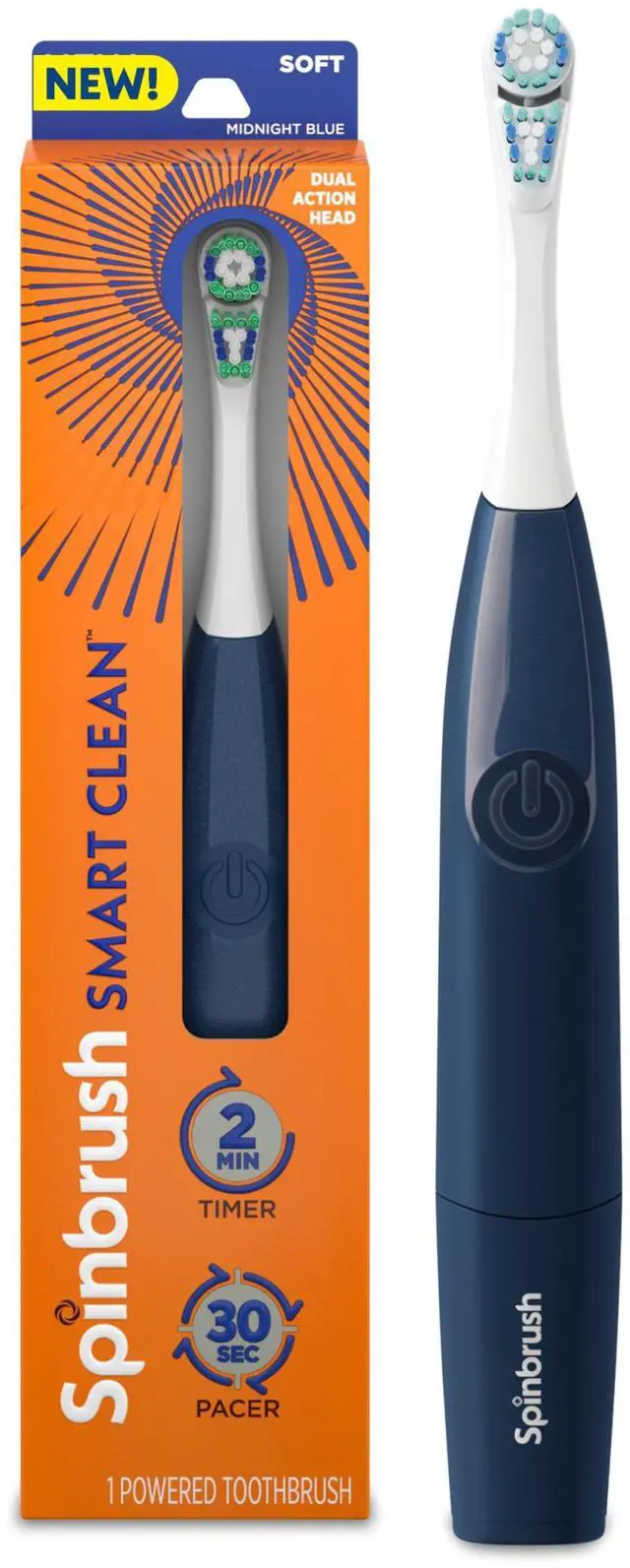 One Spinbrush Smart Clean toothbrush handle with one replaceable brush head; two AA batteries included