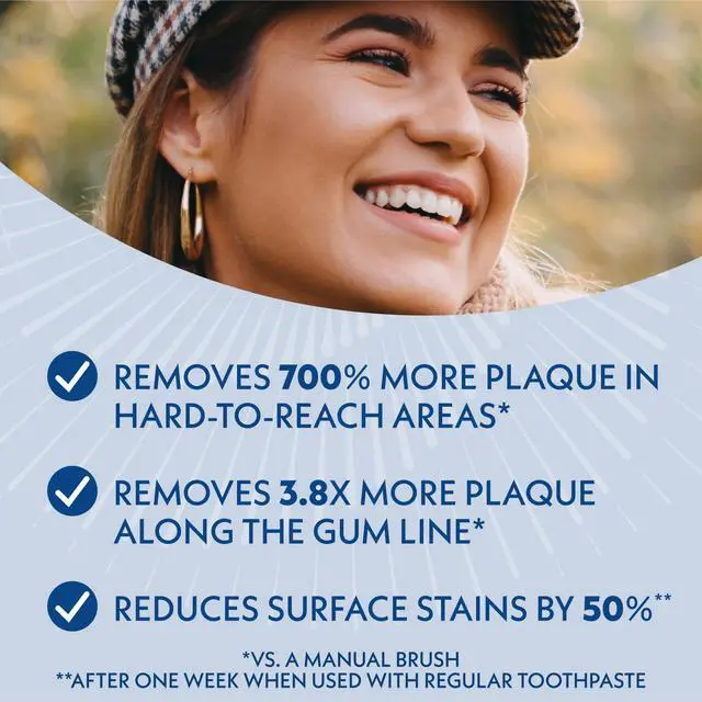 Removes more plaque in hard-to-reach areas than a manual brush