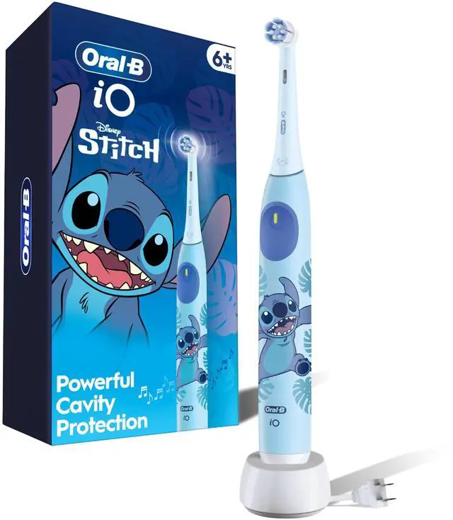 The Oral-B iO Kids Stitch combines gentle micro vibrations with Oral-B's dentist inspired round brush head to remove more plaque in hard-to-reach areas vs. a regular manual toothbrush, and deliver powerful cavity protection for kids 6+. It is designed to teach kids to become independent brushers and develop healthy habits for life, with features that make brushing fun: 2-min music timer, automatic gum pressure sensor, and 3 cleaning settings. Includes a travel case to store and carry the toothbrush wherever your kids go. 9 out of 10 kids love brushing with it!