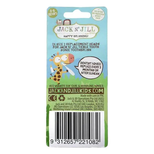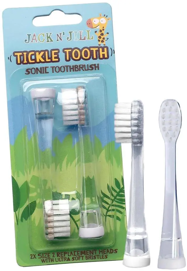 The Jack N’ Jill Tickle Tooth Toothbrush is designed for babies and toddlers from 0-36 months. Age-specific brush heads include Stage 1 (0-18 months) - extra small brush head for babies, and Stage 2 (18-36 months) - medium brush head for toddlers.