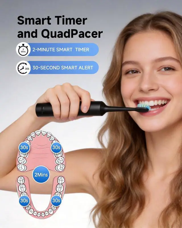 Smart Timer: Electric toothbrush with timer encourages dentist-recommended brushing habits with a convenient timer that automatically pauses, signaling when to move to the next section of your mouth for a complete clean