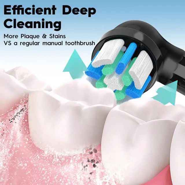 Superior plaque removal The round brush head design wraps around each tooth, providing wide coverage and eliminating up to 8 times more plaque in hard-to-reach areas.