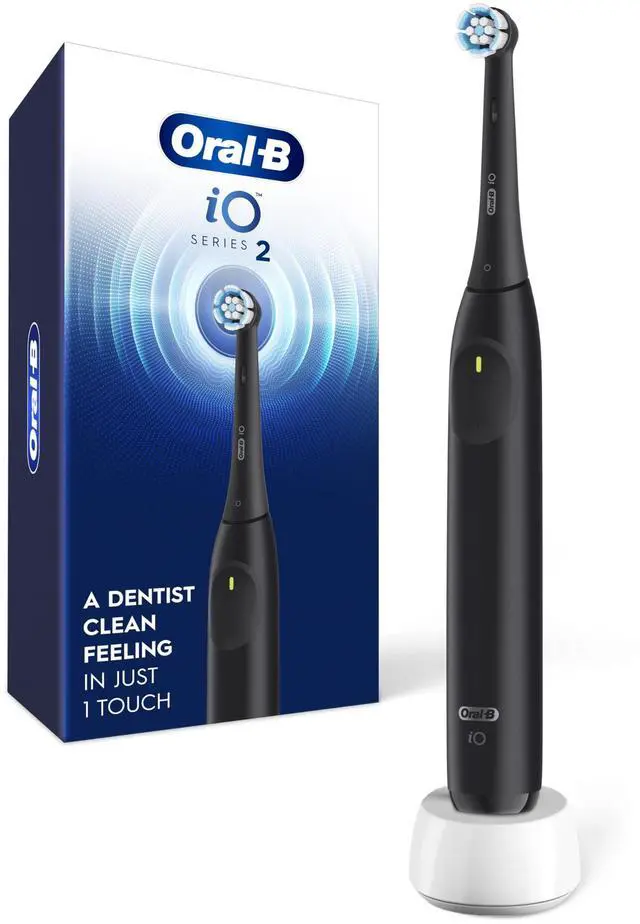 Rechargeable Electric Toothbrush, iO2, 3 Cleaning Modes, Automatic Pressure Sensor to Protect Gums, Night Black