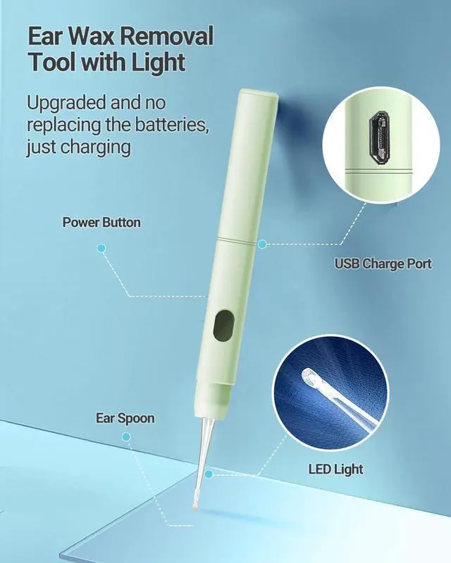 - USB Rechargeable & Portable Enjoy Cord-Free Convenience No more wasteful batteries. This ear cleaner features a built-in lithium battery with smart overcharge protectionit automatically powers off when fully charged. Charge quickly and safely via the included USB cable. Its compact, palm-sized design makes it the perfect travel companion for ear care anywhere, anytime.