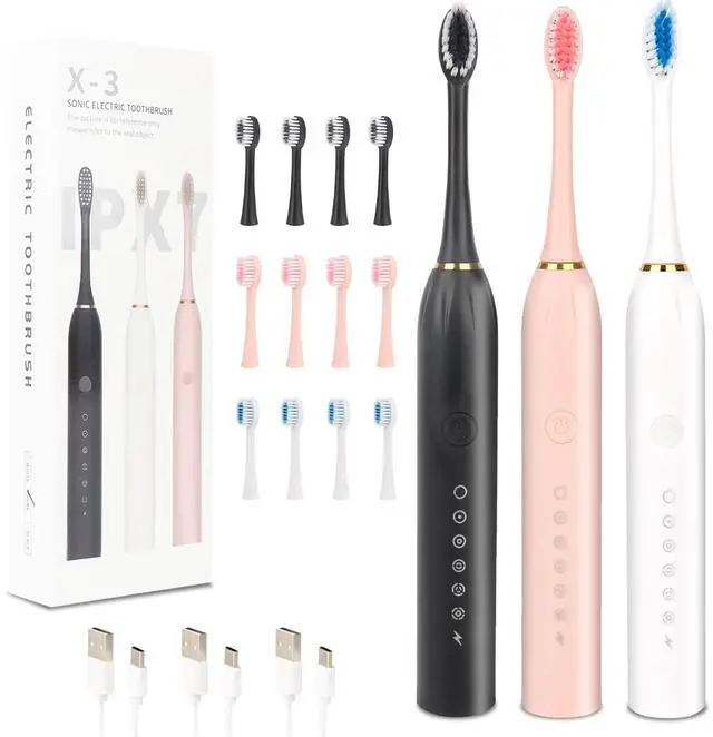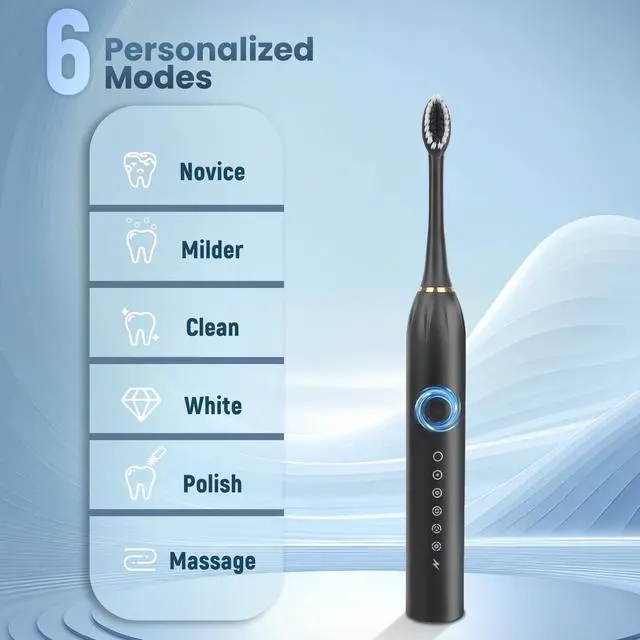 Each adult electric toothbrush comes with 4 Dupont nylon brush heads for a gentle clean. It offers 6 customizable modes to meet various oral care needs, and boasts IPX7 waterproofing plus a long-lasting battery (30 days per full charge) for convenience and durability. Available in multiple pack sizes, its ideal for families or as corporate gifts, combining functionality with flexibility.