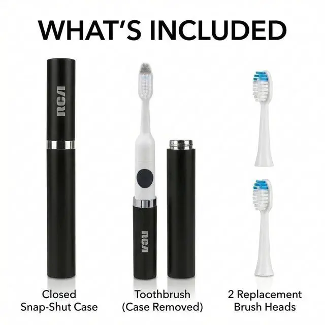 The RCA sonic electric toothbrush for adults delivers a powerful clean in a compact, travel-friendly design, making it a convenient electric toothbrush for everyday use at home or on the go. Featuring 22,000 brush strokes per minute, this sonic toothbrush provides high-speed brushing action in a lightweight battery powered toothbrush thats easy to pack for travel, gym bags, and work. The rotating spin brush toothbrush head helps provide a thorough clean feel, and the included extra brush head adds convenience for extended use. Designed for simple daily brushing, this battery operated toothbrush is a practical upgrade from a manual toothbrush and a great option for anyone looking for a portable electric toothbrush for adults.