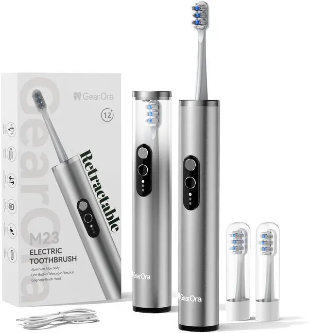 GearOra M23 Retractable Sonic Electric Toothbrush - Compact for Travel