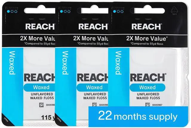 • 2X VALUE: 115 yards in a 3-pack bundle (*Compared to 55yd floss) unflavored and waxed coating allows floss to slide smoothly between teeth to effectively remove plaque