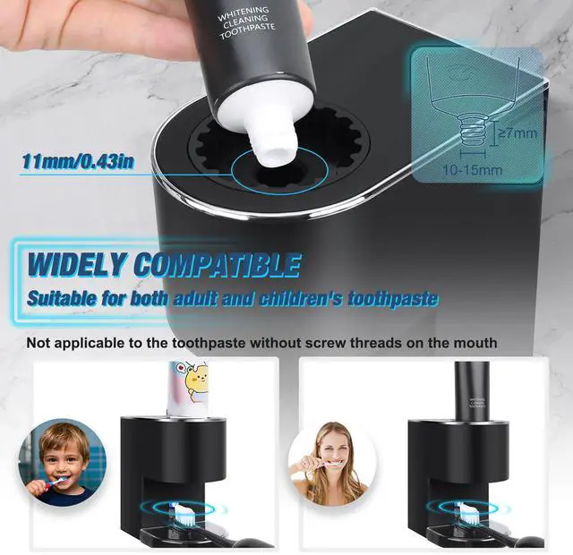 Suitable for 99% of the toothpaste with screw threads on the mouth in the market.Not applicable to the toothpaste without screw threads on the mouth.
