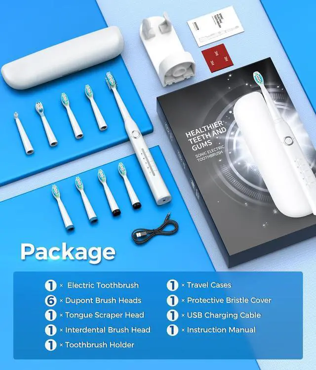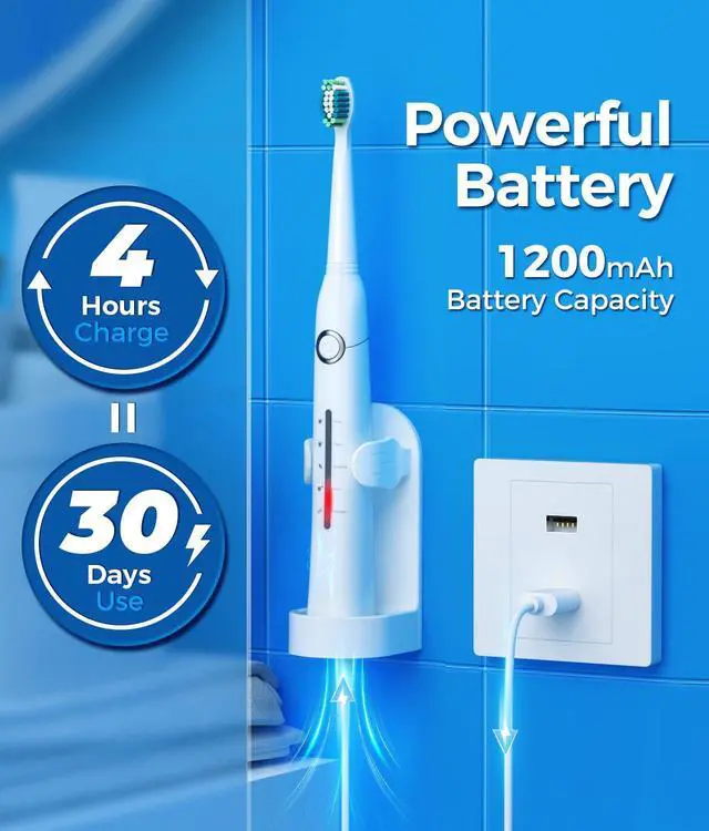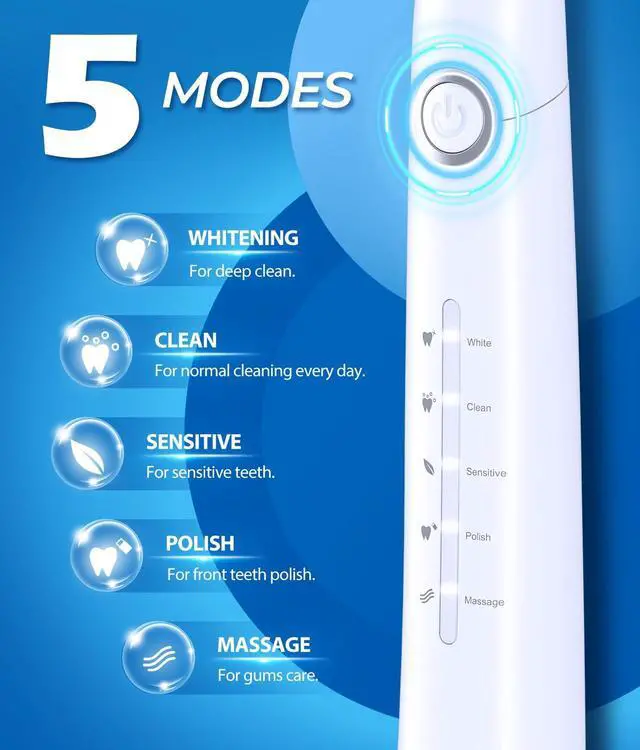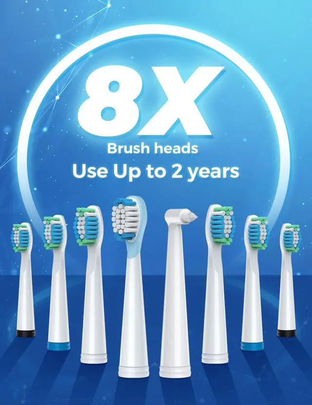 8 Dupont Replaceable Brush Heads for 2 Years to use 4 Hours Fast Charge, Lasts Up 30 Days 5 Personalized Modes to meet all your daily cleaning needs 2 Minutes Smart Timer to encourage a healthy brushing habit Healthy gums and white teeth mean a beautiful smile. TEETHEORY Brand is a pioneer in health & personal care filed. TEETHEORY electric toothbrush has helped 2,000,000 people whiten their teeth and keep their breath fresh through sonic electric technology.