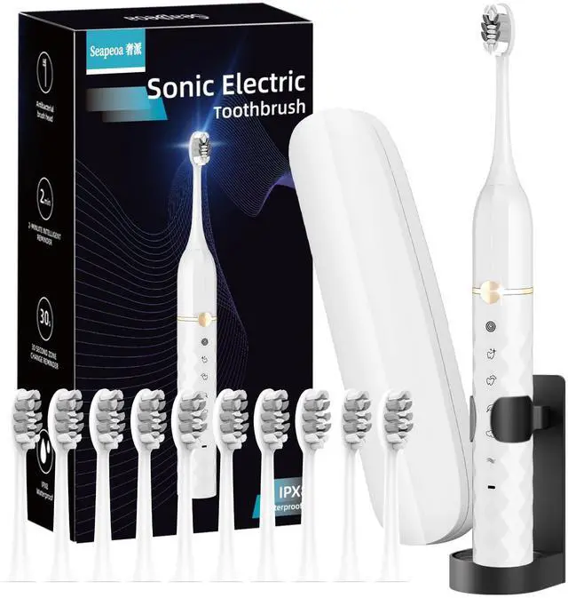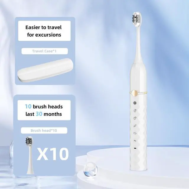 Experience superior cleaning and convenience with this advanced electric toothbrush set. Featuring sonic vibration technology, a long-lasting battery, and a comprehensive kit with replacement brush heads and a travel case, it's the perfect choice for maintaining optimal oral hygiene.