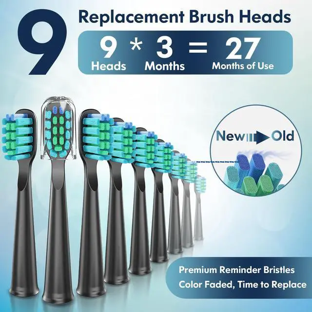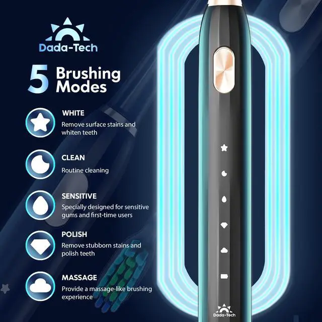 Dada-Tech utilize advanced BPA-Free materials for our toothbrush bristles. Experience the color shift from blue to white over a span of three months, reminding you to replace the brush head, ensuring consistently optimal bristle health.
