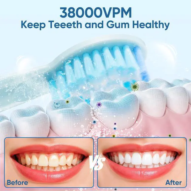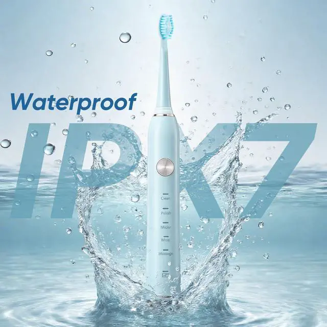 Smart Timer & IPX7 Waterproof: Built-in 2-minute scientific brushing timer with 30-second zone reminders to develop healthy habits; fully sealed IPX7 design allows safe use in showers/baths, and easy rinsing under running water.