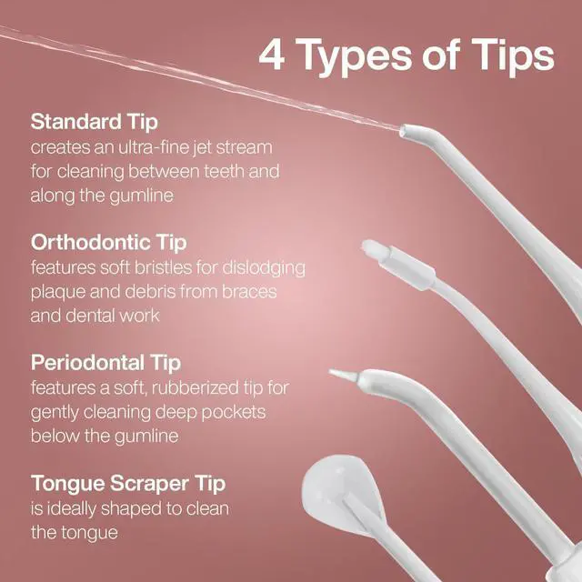 Ideal for Braces & Hard-to-Reach Areas Aqua Flossers 360-degree rotating tips allow for a deep and thorough clean, making it a great choice for those with braces, dental work, or hard-to-reach areas. The included orthodontic and periodontal tips offer specialized care for a complete clean.