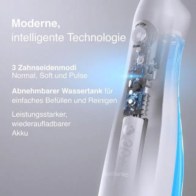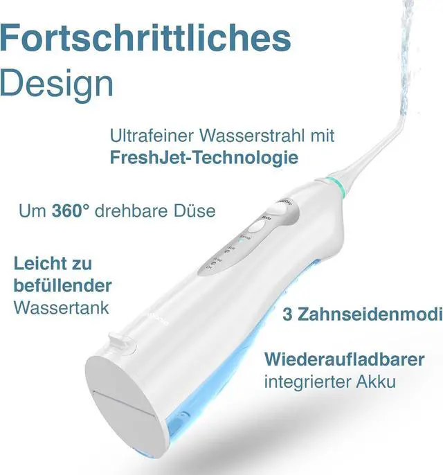 Powerful Water Flosser for Deep Clean Aqua Flosser uses a rechargeable lithium-ion battery to deliver targeted water jets that effectively remove food particles and plaque. Designed for convenience, it features 3 flossing modes, 5 interchangeable jet tips, and a travel bag for on-the-go use.